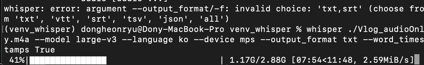 whisper "/Users/username/Documents/my_lectures/lecture_20250727.m4a" \ # 변환하고 싶은 음성 경로